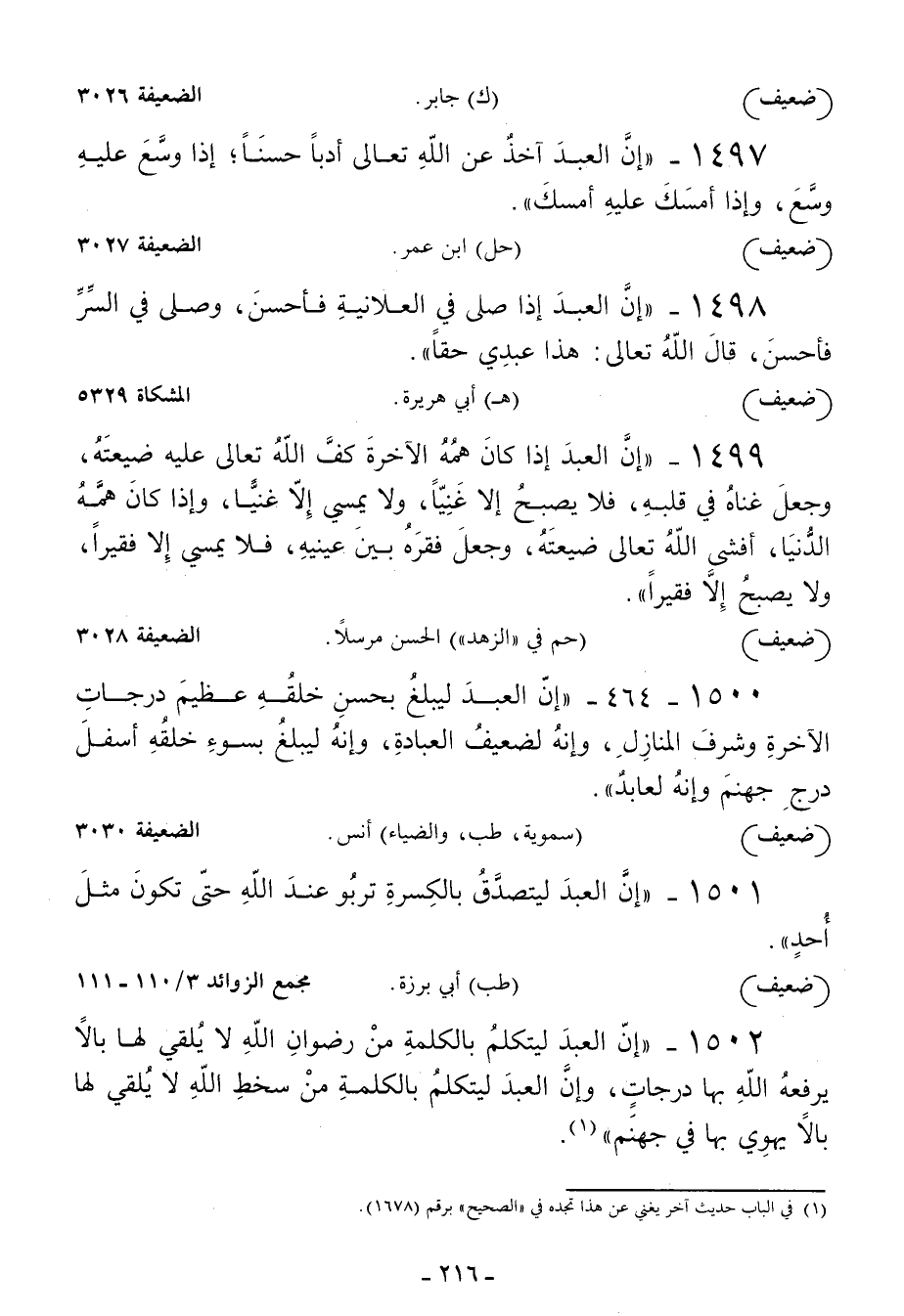1502 - إن العبد ليتكلم بالكلمة من رضوان الله لا يلقي لها بالا يرفعه الله بها درجات وإن العبد ليتكلم بالكلمة من سخط الله لا يلقي لها بالا يهوي بها في جهنم -[217]-