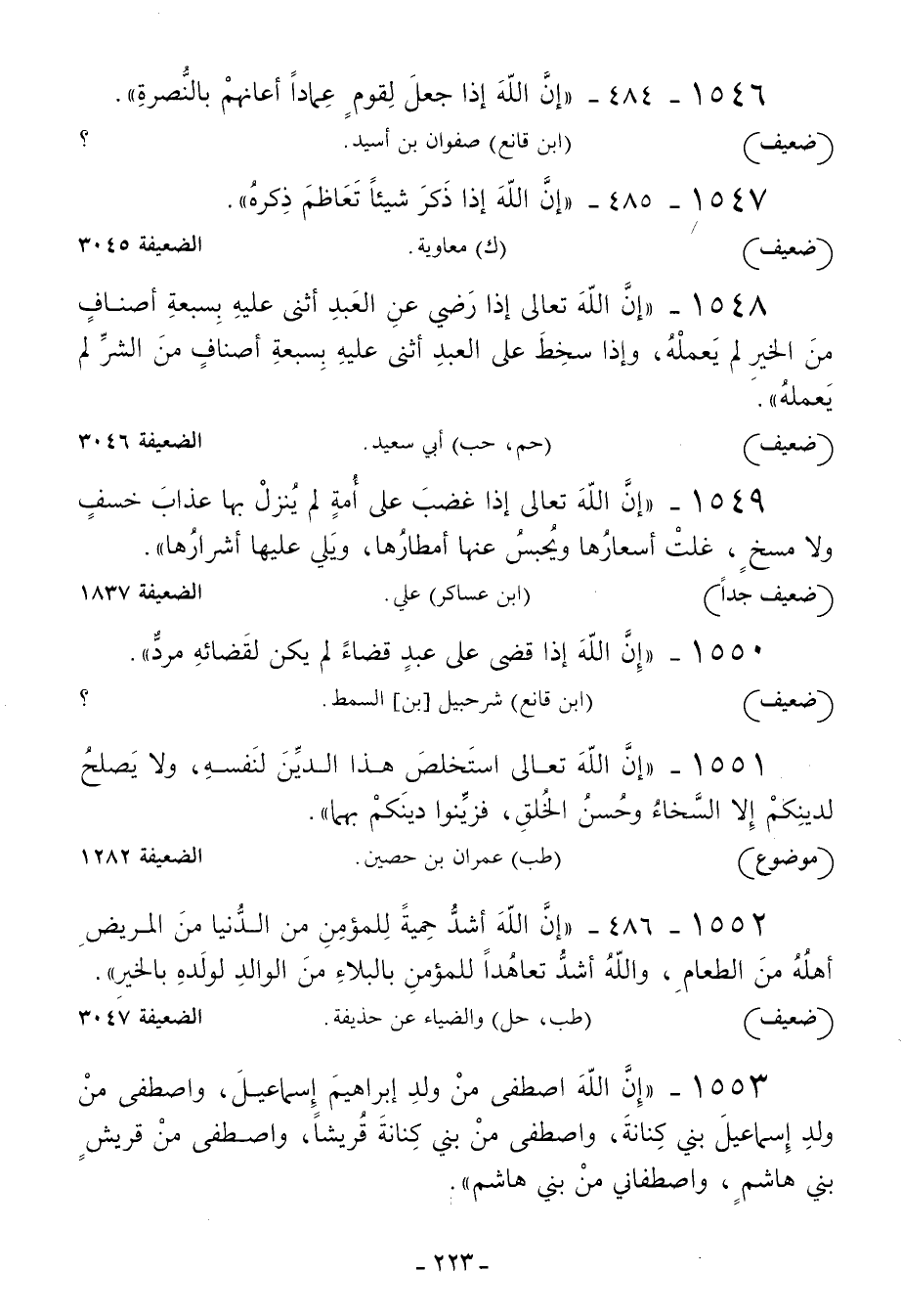1553 - إن الله اصطفى من ولد إبراهيم إسماعيل واصطفى من ولد إسماعيل بني كنانة واصطفى من بني كنانة قريشا واصطفى من قريش بني هاشم واصطفاني من بني هاشم -[224]-