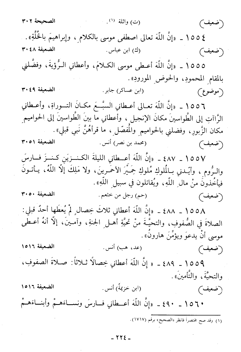 1555 - إن الله أعطى موسى الكلام وأعطاني الرؤية وفضلني بالمقام المحمود والحوض المورود