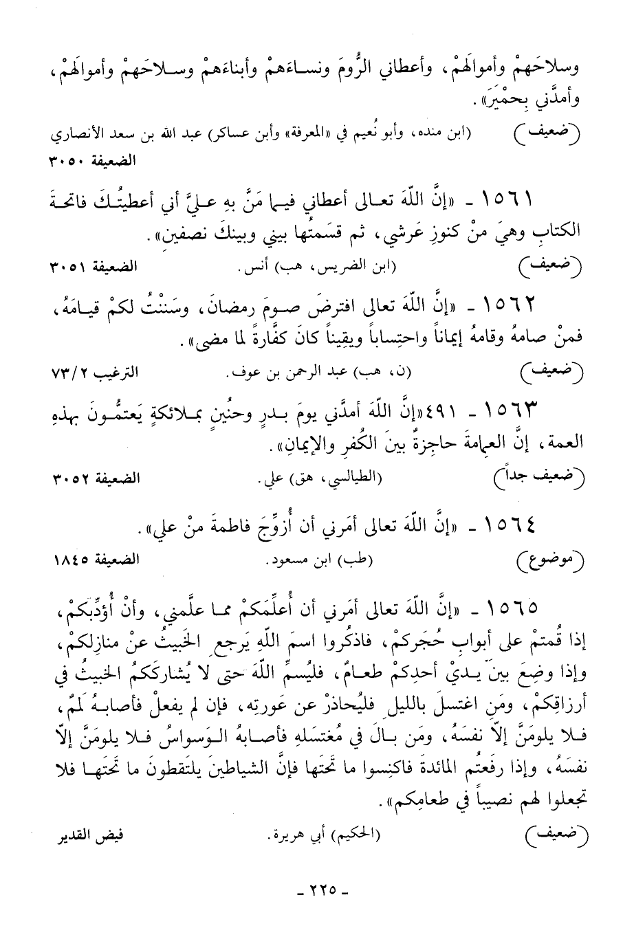 1563 - إن الله أمدني يوم بدر وحنين بملائكة يعتمون بهذه العمة إن العمامة حاجزة بين الكفر والإيمان
