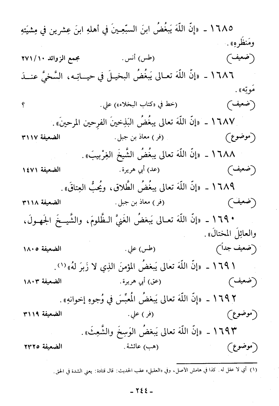 1690 - إن الله تعالى يبغض الغني الظلوم والشيخ الجهول والعائل المختال