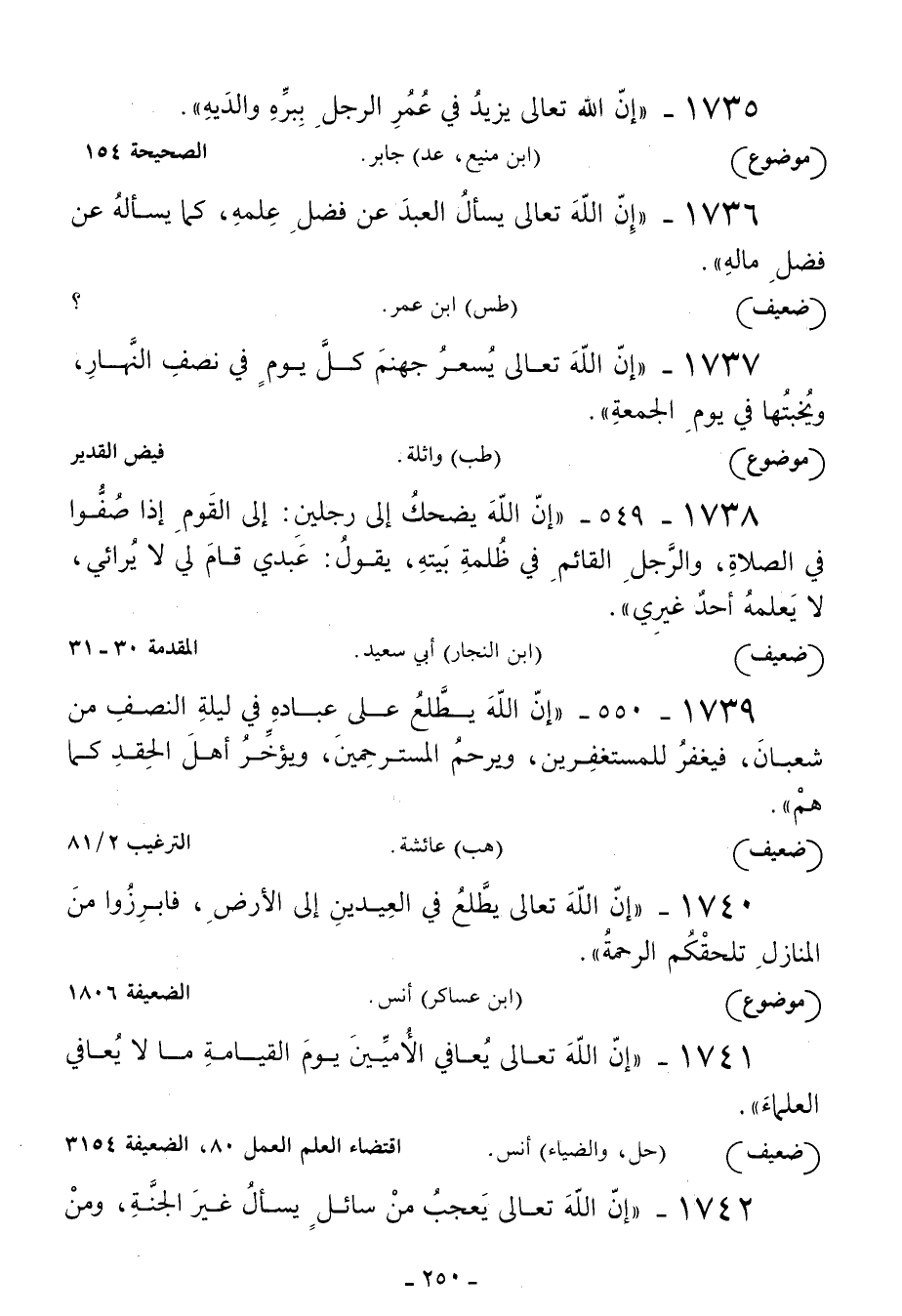 1737 - إن الله تعالى يسعر جهنم كل يوم في نصف النهار ويخبتها في يوم الجمعة
