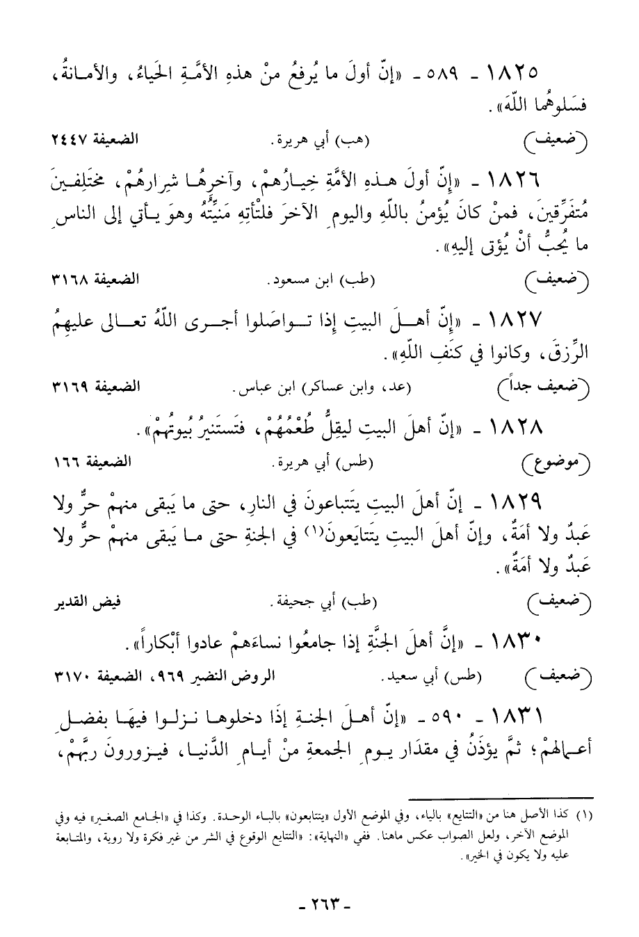 1826 - إن أول هذه الأمة خيارهم وآخرها شرارهم مختلفين متفرقين فمن كان يؤمن بالله واليوم الآخر فلتأته منيته وهو يأتي إلى الناس ما يحب أن يؤتى إليه