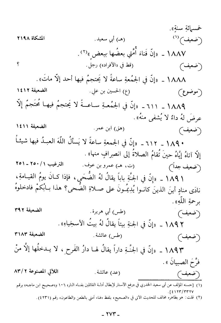 1891 - إن في الجنة بابا يقال له الضحى فإذا كان يوم القيامة نادى مناد أين الذين كانوا يديمون على صلاة الضحى؟ هذا بابكم فادخلوه برحمة الله