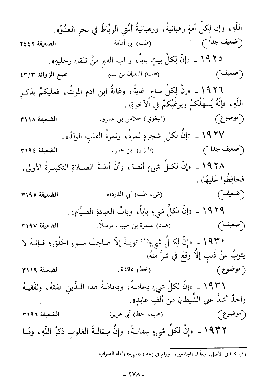 1931 - إن لكل شيء دعامة ودعامة هذا الدين الفقه ولفقيه واحد أشد على الشيطان من ألف عابد