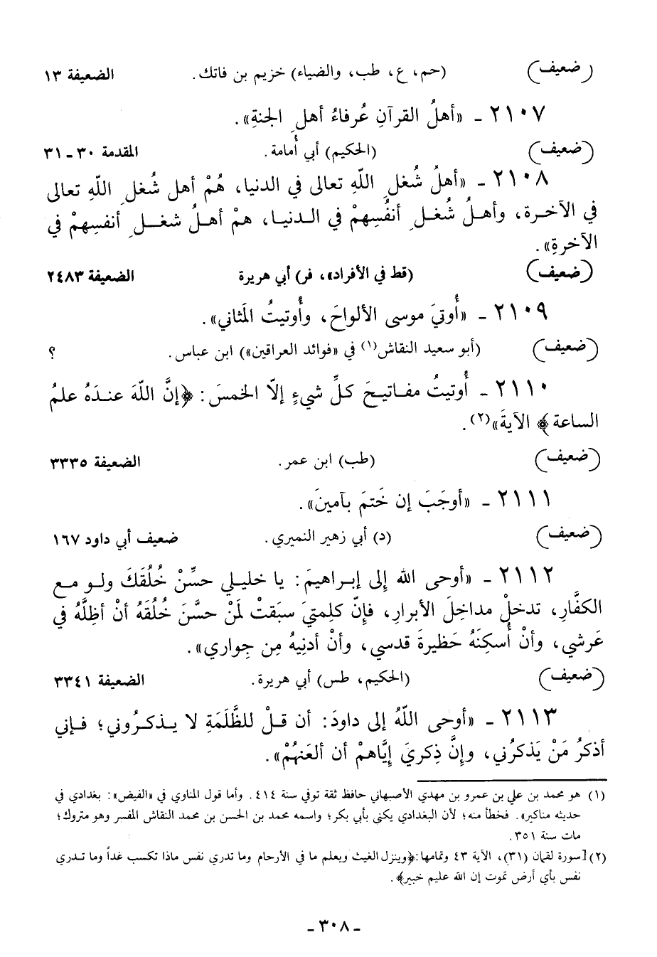 2113 - أوحى الله إلى داود: أن قل للظلمة لا يذكروني فإني أذكر من يذكرني وإن ذكري إياهم أن ألعنهم -[309]-
