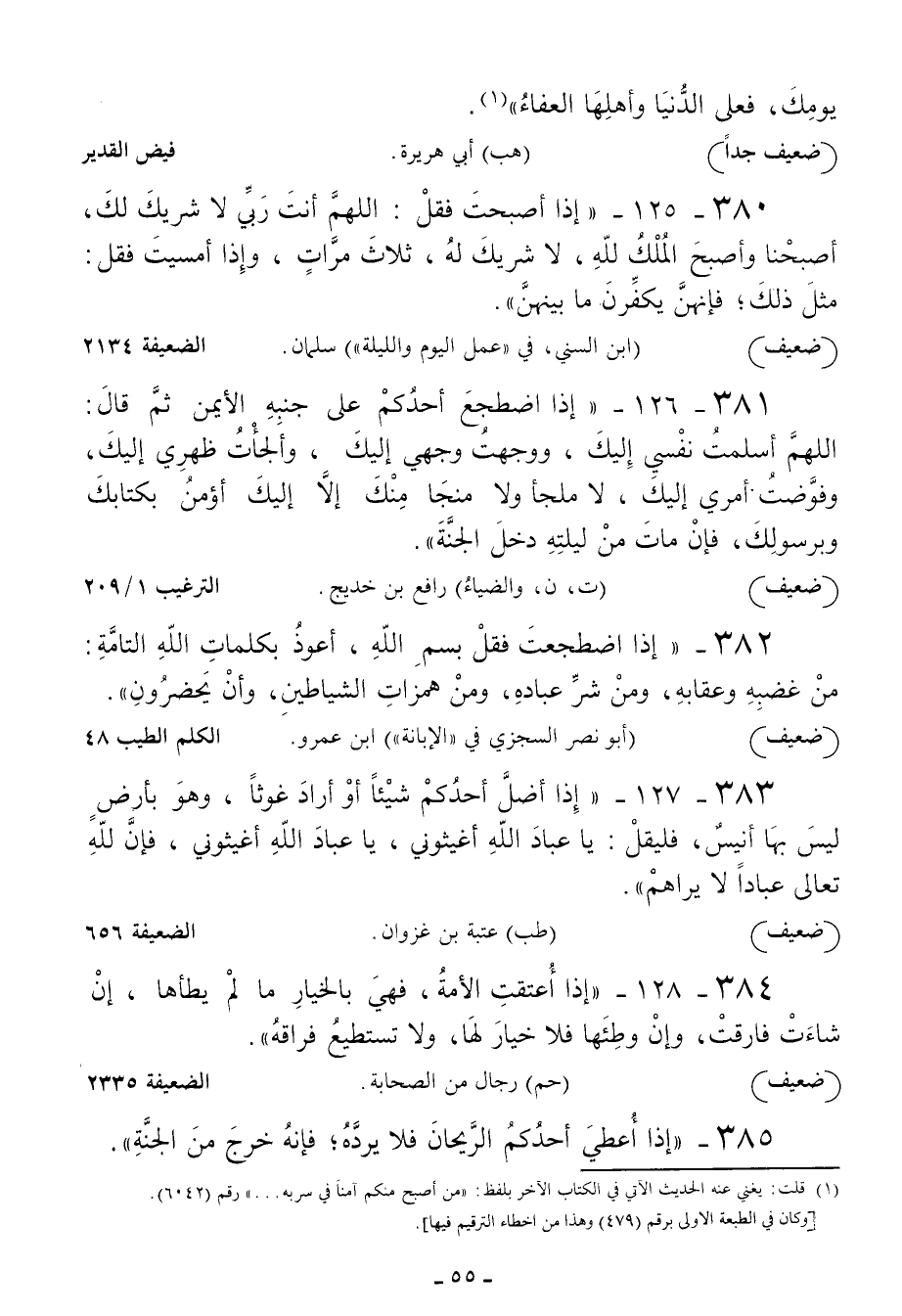 380 - إذا أصبحت فقل: اللهم أنت ربي لا شريك لك أصبحنا وأصبح الملك لله لا شريك له ثلاث مرات وإذا أمسيت فقل: مثل ذلك فإنهن يكفرن ما بينهن