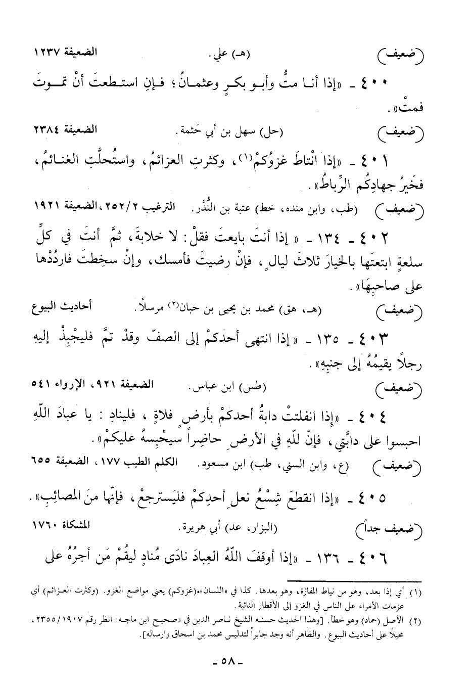 401 - إذا انتاط غزوكم وكثرت العزائم واستحلت الغنائم فخير جهادكم الرباط