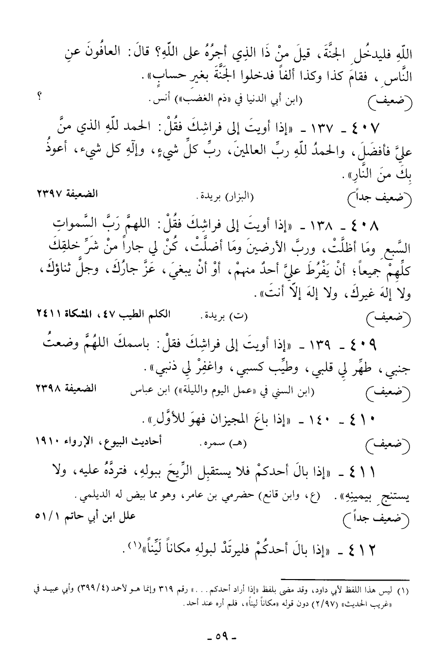 407 - إذا أويت إلى فراشك فقل: الحمد لله الذي من علي فأفضل والحمد لله رب العالمين رب كل شيء وإله كل شيء أعوذ بك من النار