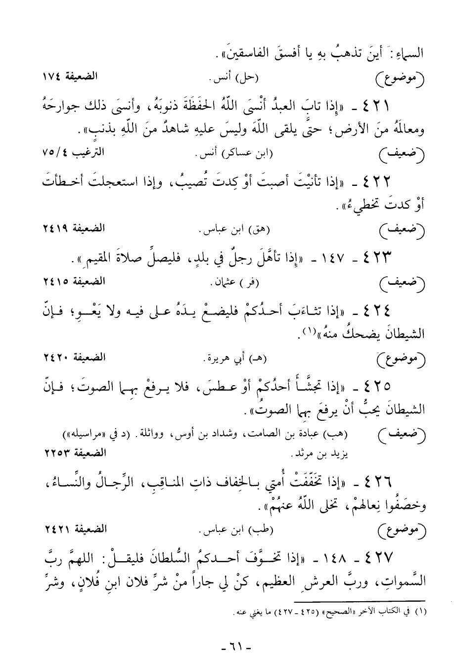 426 - إذا تخففت أمتي بالخفاف ذات المناقب الرجال والنساء وخصفوا نعالهم تخلى الله عنهم