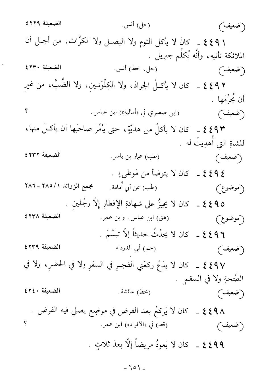 4499 - كان لا يعود مريضا إلا بعد ثلاث -[652]-
