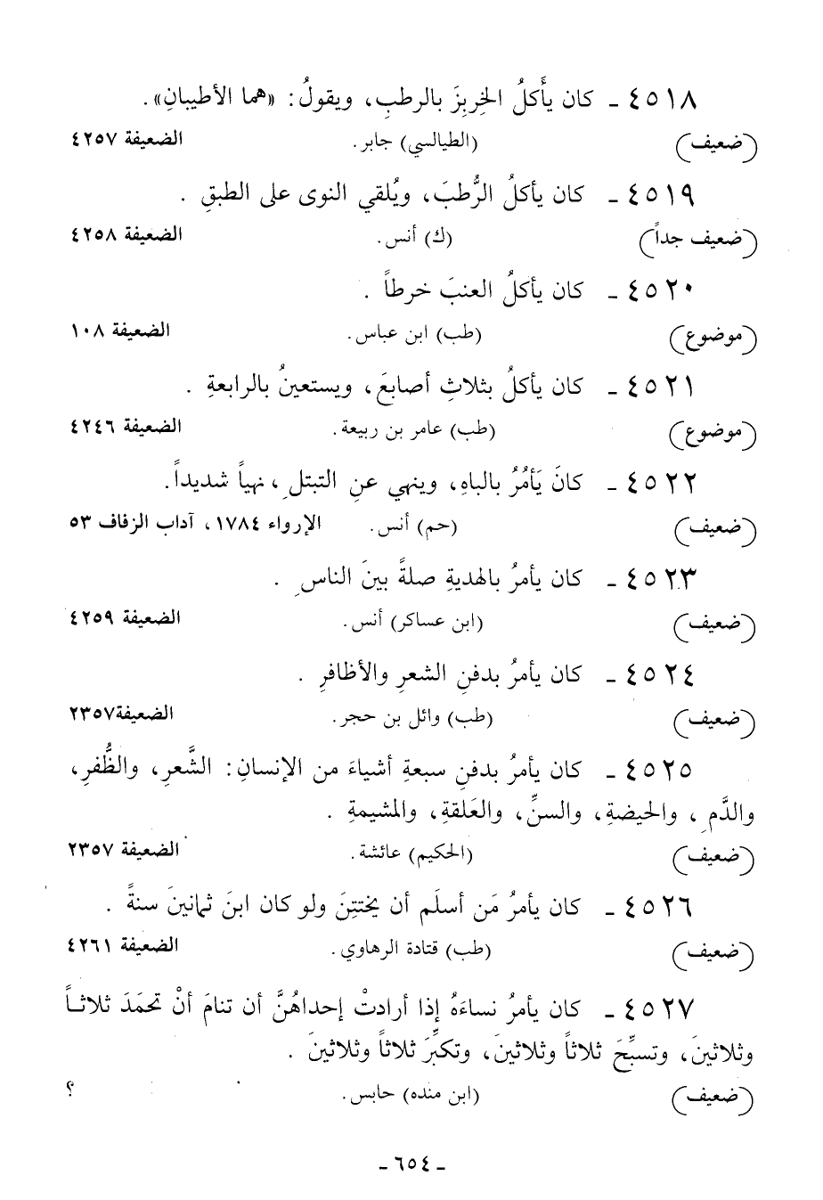 4525 - كان يأمر بدفن سبعة أشياء من الإنسان: الشعر والظفر الدم والحيضة والسن والعلقة والمشيمة
