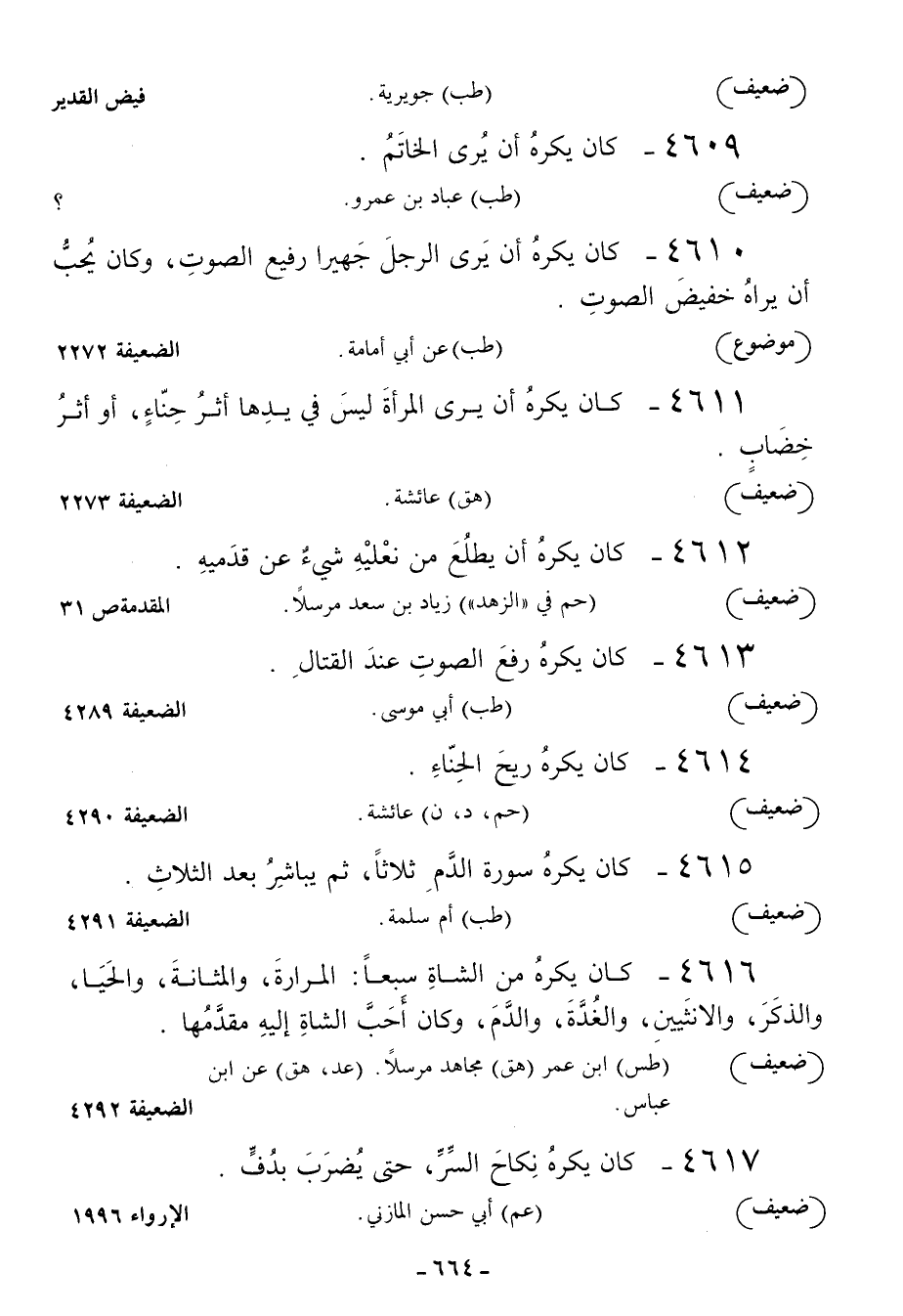 4610 - كان يكره أن يرى الرجل جهيرا رفيع الصوت وكان يحب أن يراه خفيض الصوت