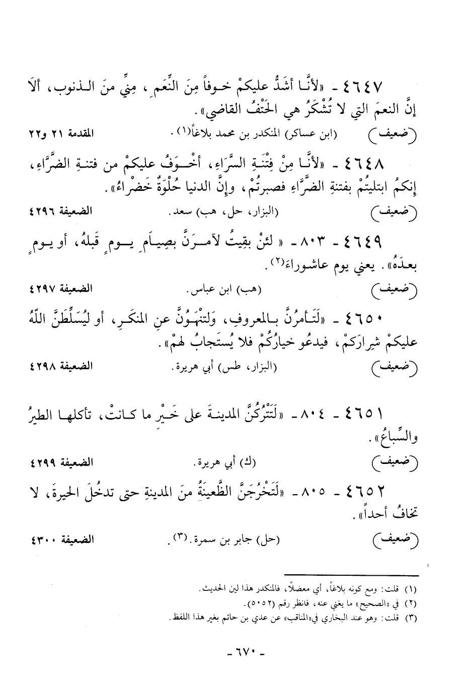 (ابن عساكر) عن المنكدر بن محمد بن المنكدر بلاغا.