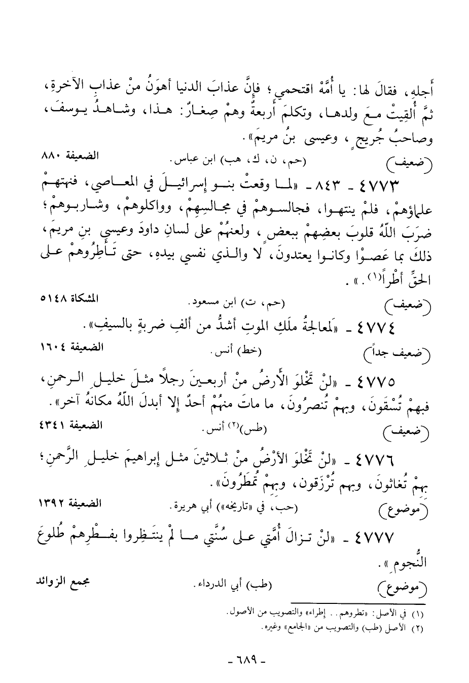 4776 - لن تخلو الأرض من ثلاثين مثل إبراهيم خليل الرحمن بهم تغاثون وبهم ترزقون وبهم تمطرون