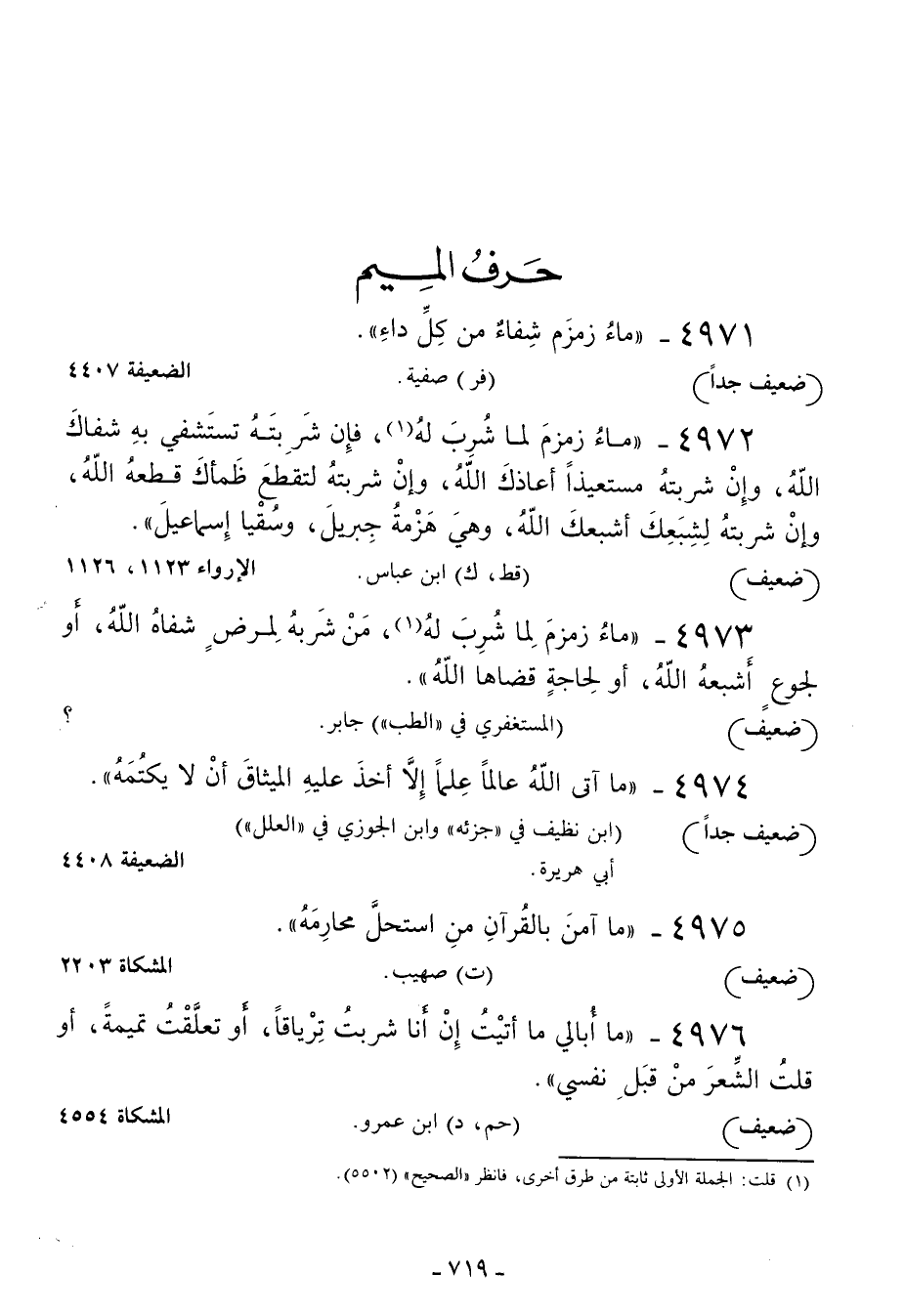 4973 - ماء زمزم لما شرب له من شربه لمرض شفاه الله أو لجوع أشبعه الله أو لحاجة قضاها الله