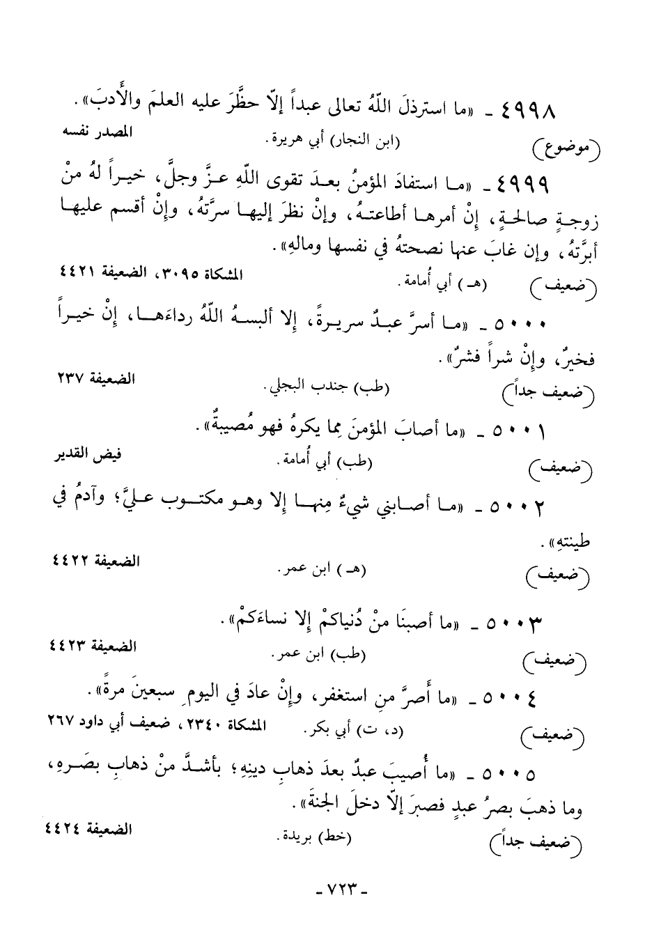 5001 - ما أصاب المؤمن مما يكره فهو مصيبة