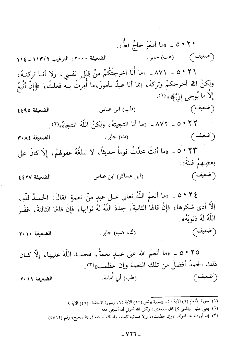 5024 - ما أنعم الله تعالى على عبد من نعمة فقال: الحمد لله إلا أدى شكرها فإن قالها الثانية جدد الله له ثوابها فإن قالها الثالثة غفر الله له ذنوبه