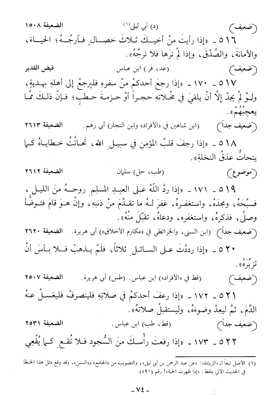 517 - إذا رجع أحدكم من سفره فليرجع إلى أهله بهدية ولو لم يجد إلا أن يلقى في مخلاته حجرا أو حزمة حطب فإن ذلك مما يعجبهم