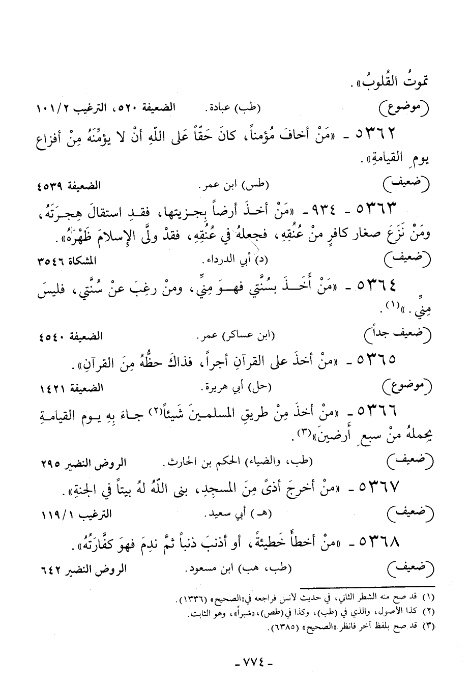 5366 - من أخذ من طريق المسلمين شيئا جاء به يوم القيامة يحمله من سبع أرضين