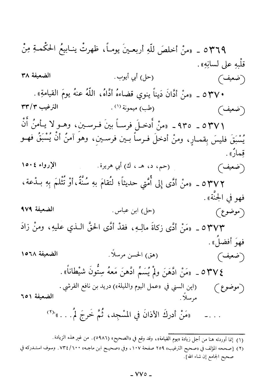 5372 - من أدى إلى أمتي حديثا لتقام به سنة أو تثلم به بدعة فهو في الجنة