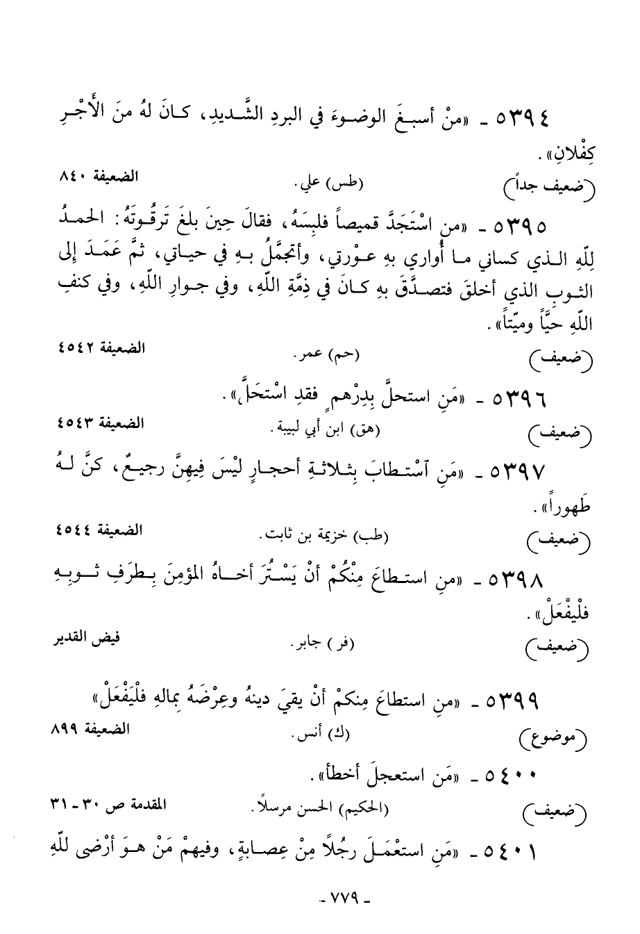 5397 - من استطاب بثلاثة أحجار ليس فيهن رجيع كن له طهورا