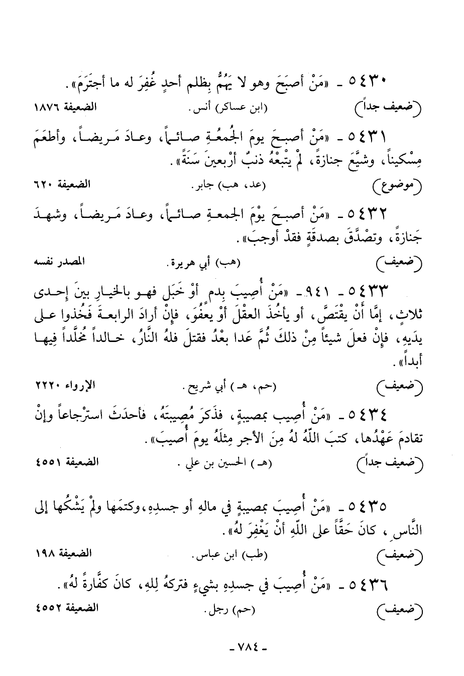5431 - من أصبح يوم الجمعة صائما وعاد مريضا وأطعم مسكينا وشيع جنازة لم يتبعه ذنب أربعين سنة