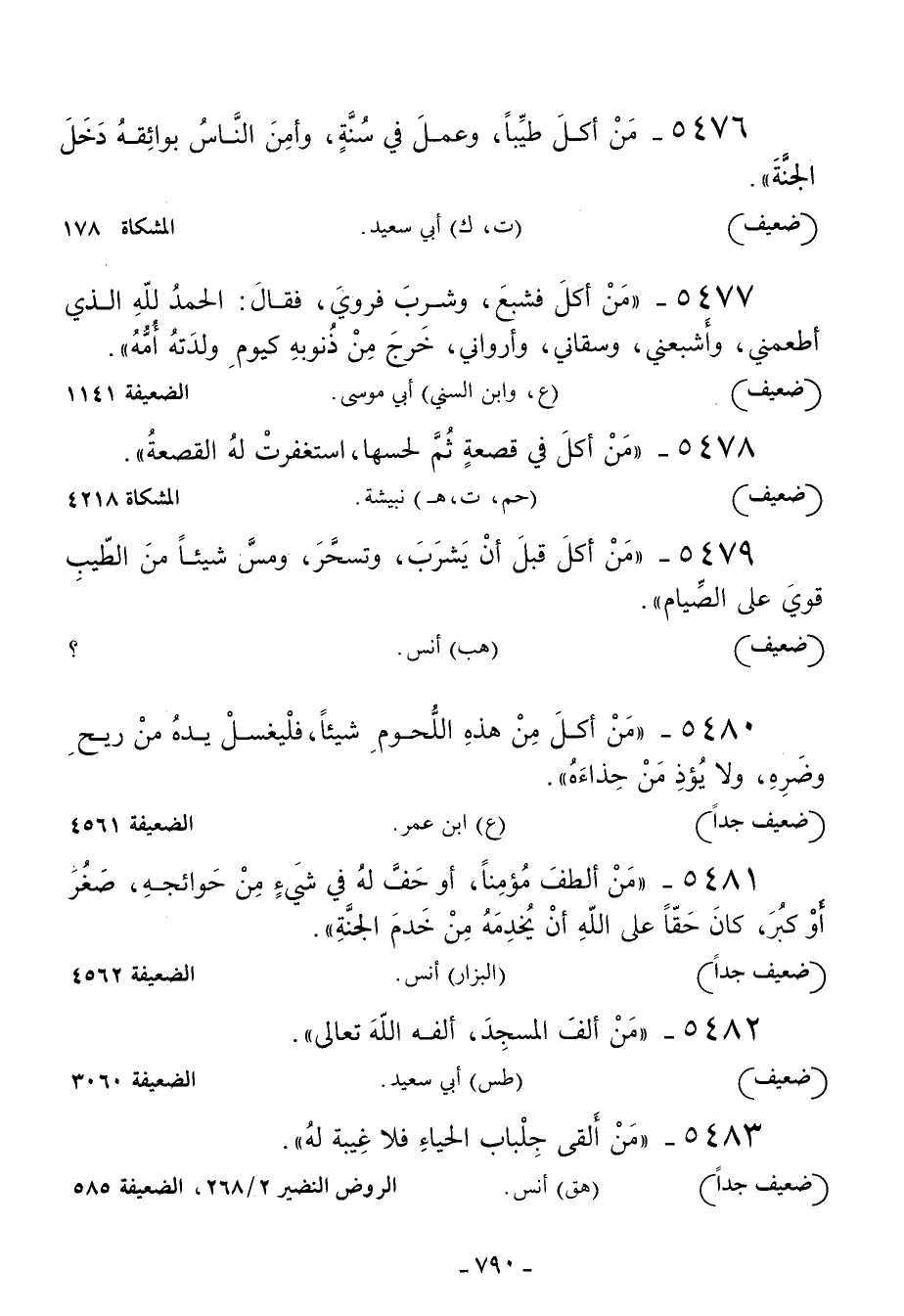 5480 - من أكل من هذه اللحوم شيئا فليغسل يده من ريح وضره ولا يؤذ من حذاءه