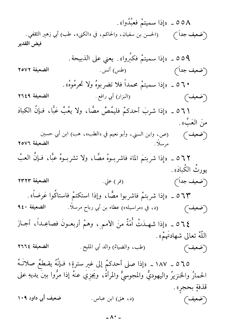 562 - إذا شربتم الماء فاشربوه مصا ولا تشربوه عبا فإن العب يورث الكباد
