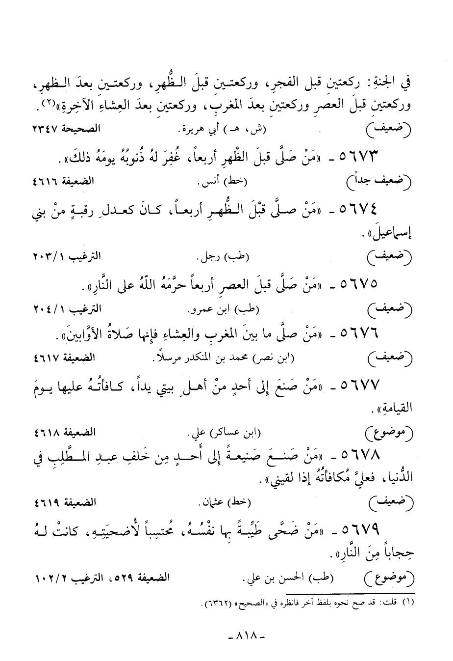 5673 - من صلى قبل الظهر أربعا غفر له ذنوبه يومه ذلك