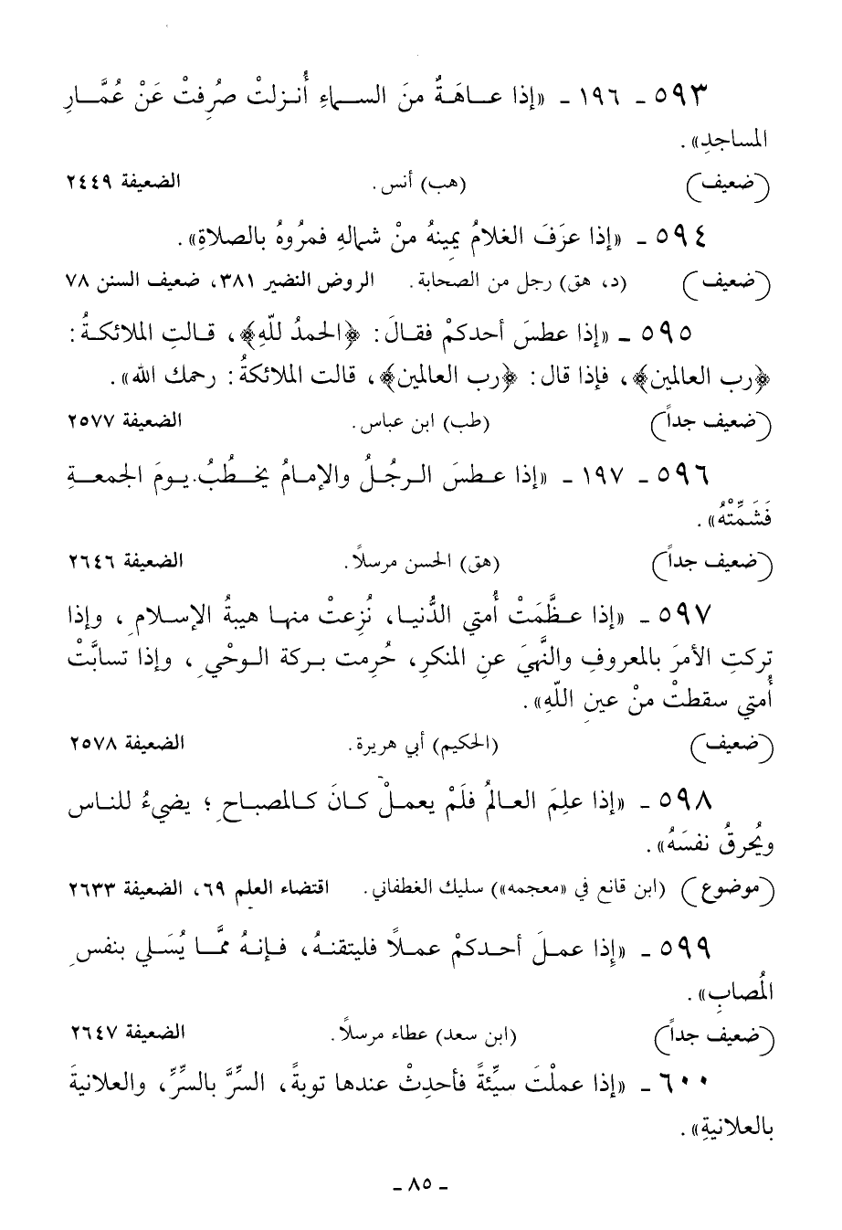 593 - إذا عاهة من السماء أنزلت صرفت عن عمار المساجد