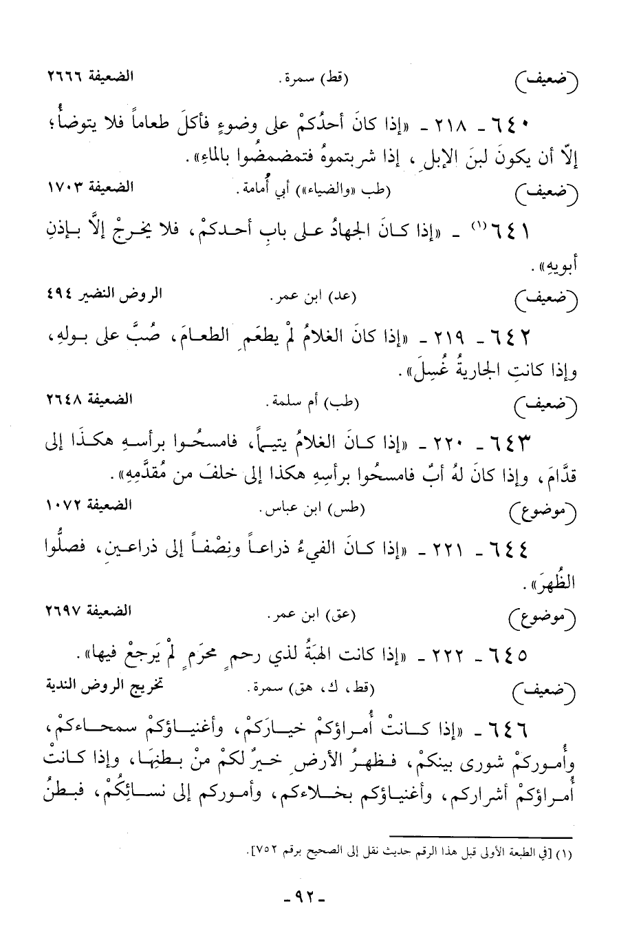 646 - إذا كانت أمراؤكم خياركم وأغنياؤكم سمحاءكم وأموركم شورى بينكم فظهر الأرض خير لكم من بطنها وإذا كانت أمراؤكم أشراركم وأغنياؤكم بخلاءكم وأموركم إلى نسائكم فبطن -[93]- الأرض خير لكم من ظهرها
