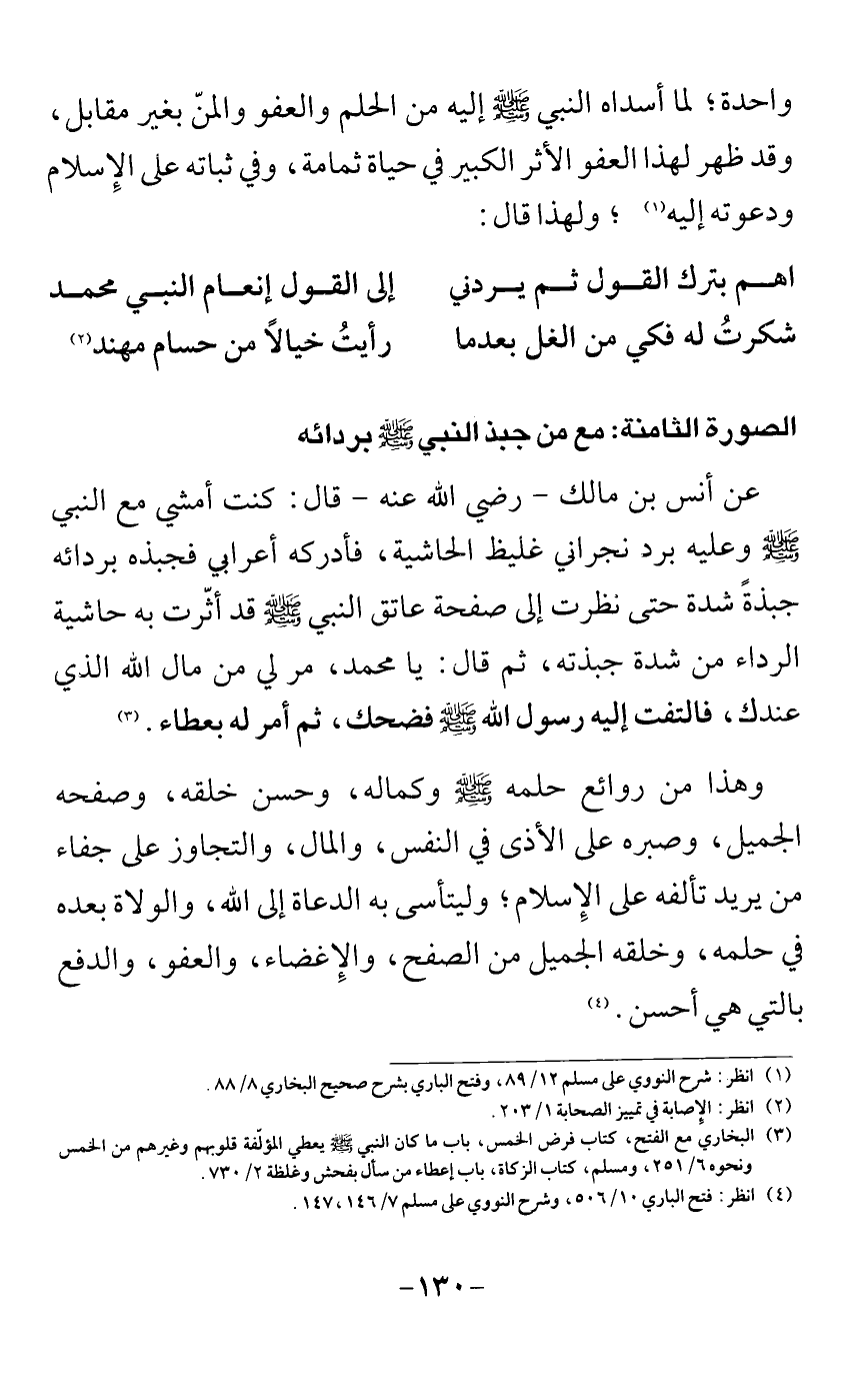 ومع هذا كله حلم عنه عمر وعفا عنه، وصفح بعدما سمع الآية، وسمع قول الحر: إن هذا من الجاهلين، ووقف عند الآية: ولم يعمل بغير ما دلت عليه، بل عمل بمقتضاها، - رضي الله عنه - وأرضاه (¬1)، وهذا يدل على كمال حلمه وحكمته التي استفادها من هدي رسول الله - صلى الله عليه وسلم - فرسخت في ذهنه حتى كانت هيئة راسخة ثابتة في نفسه وخُلُقه.