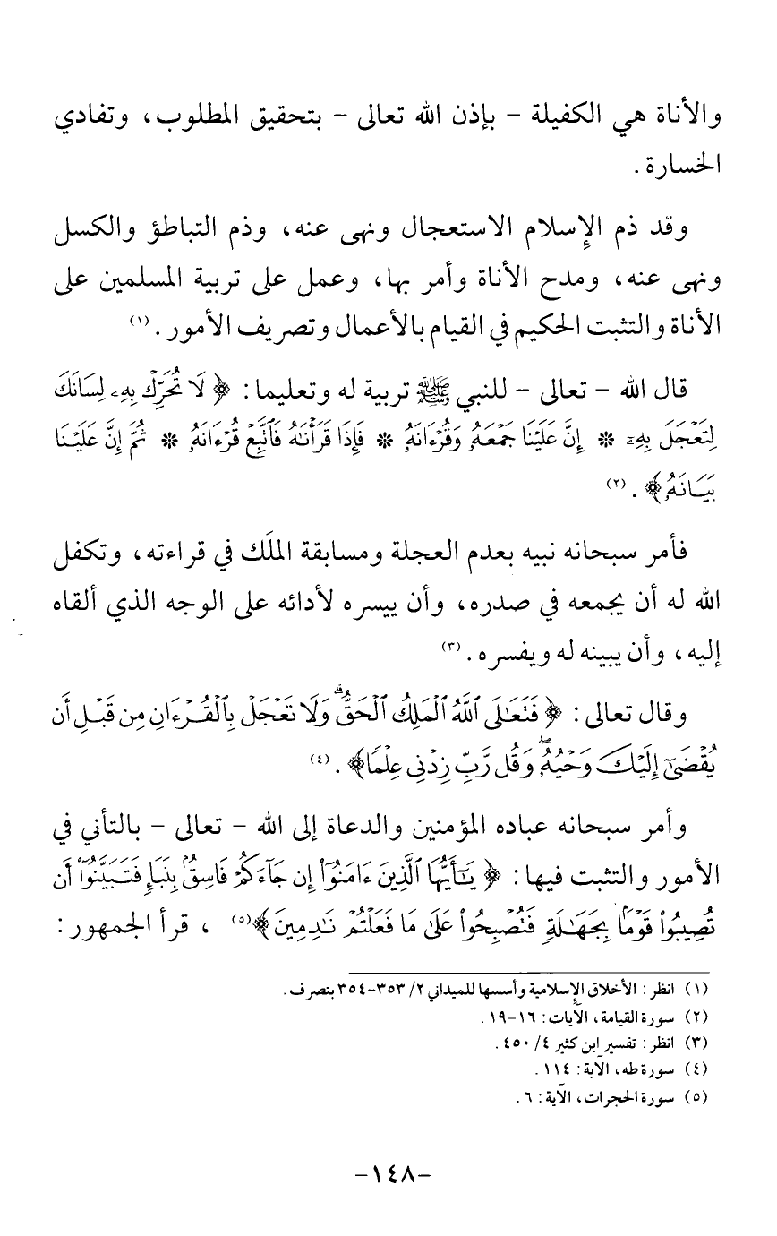 ولِسُمُوِّ الأناة أحبها الله - عز وجل -، قال رسول الله - صلى الله عليه وسلم - للأشج: ((إن فيك خصلتين يحبهما الله: الحلم، والأناة)) (¬3).