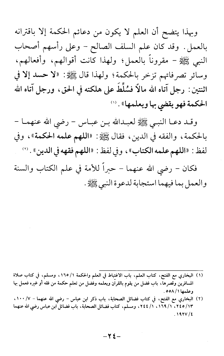 فيظهر مما تقدم أن العلم لا بدَّ فيه من العمل والإخلاص والمتابعة.
