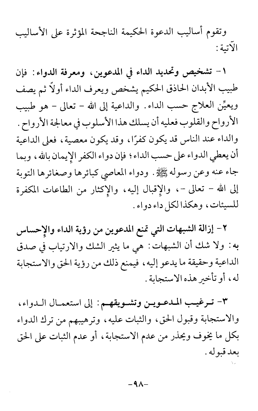 (¬1) انظر: أساليب الدعوة ووسائل تبليغها بالتفصيل في: أصول الدعوة لعبد الكريم زيدان، ص395 - 469، والدعوة إلى الله لتوفيق الواعي، ص241 - 372، والحكمة في الدعوة إلى الله للمؤلف، ص124 - 130.