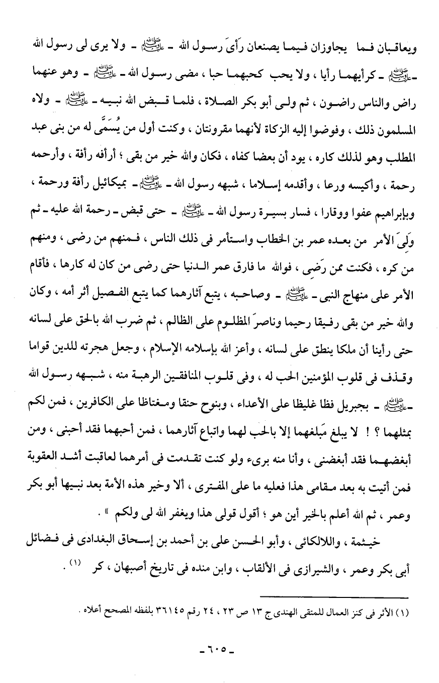 (¬1) الأثر في كنز العمال للمتقى الهندى ج 13 ص 23، 24 رقم 36145 بلفظه المصحح أعلاه.