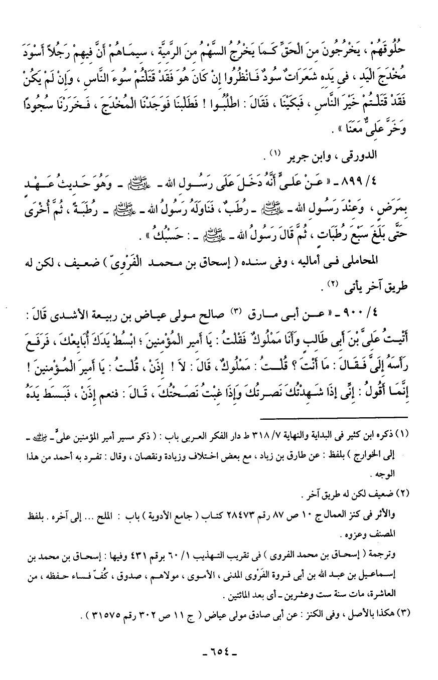 (¬1) ذكره ابن كثير في البداية والنهاية 7/ 318 ط دار الفكر العربى باب: (ذكر مسير أمير المؤمنين عليٍّ - رضي الله عنه - إلى الخوارج) بلفظ: عن طارق بن زياد، مع بعض اختلاف وزيادة ونقصان، وقال: تفرد به أحمد من هذا الوجه.