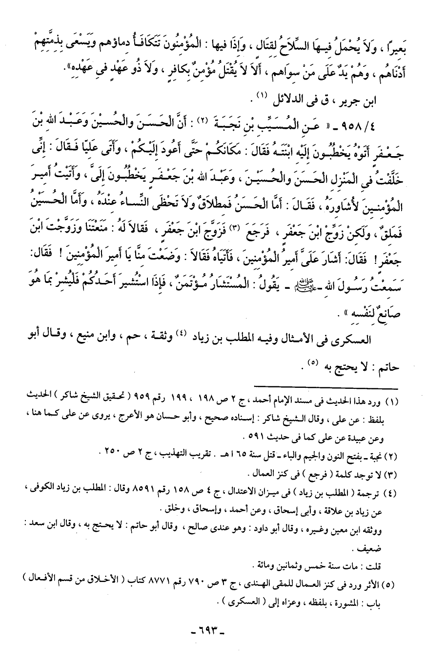(¬1) ورد هذا الحديث في مسند الإمام أحمد، ج 2 ص 198، 199 رقم 959 (تحقيق الشيخ شاكر) الحديث بلفظ: عن على، وقال الشيخ شاكر: إسناده صحيح، وأبو حسان هو الأعرج، يروى عن على كما هنا، وعن عبيدة عن على كما في حديث 591.