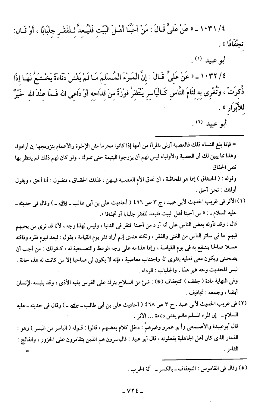 (¬1) الأثر في غريب الحديث لأبى عبيد، ج 3 ص 466 (أحاديث على بن أبى طالب - رضي الله عنه -) وقال في حديثه - عليه السلام -: "من أحبنا أهل البيت فليعد للفقر جلبابا أو تجفافا".