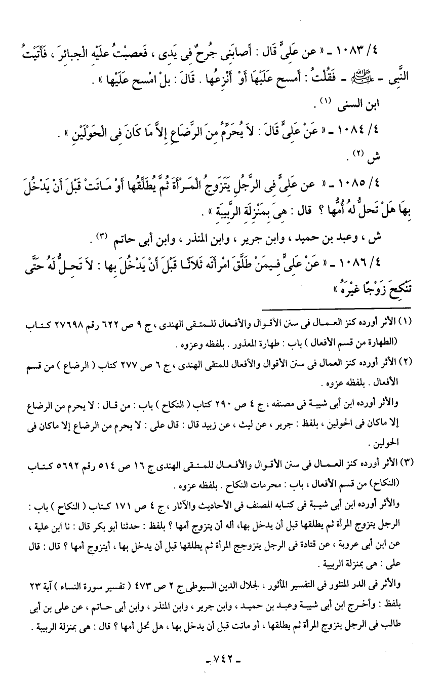 (¬3) الأثر أورده كنز العمال في سنن الأقوال والأفعال للمتقى الهندى ج 16 ص 514 رقم 5692 كتاب (النكاح) من قسم الأفعال، باب: محرمات النكاح. بلفظه عزوه.