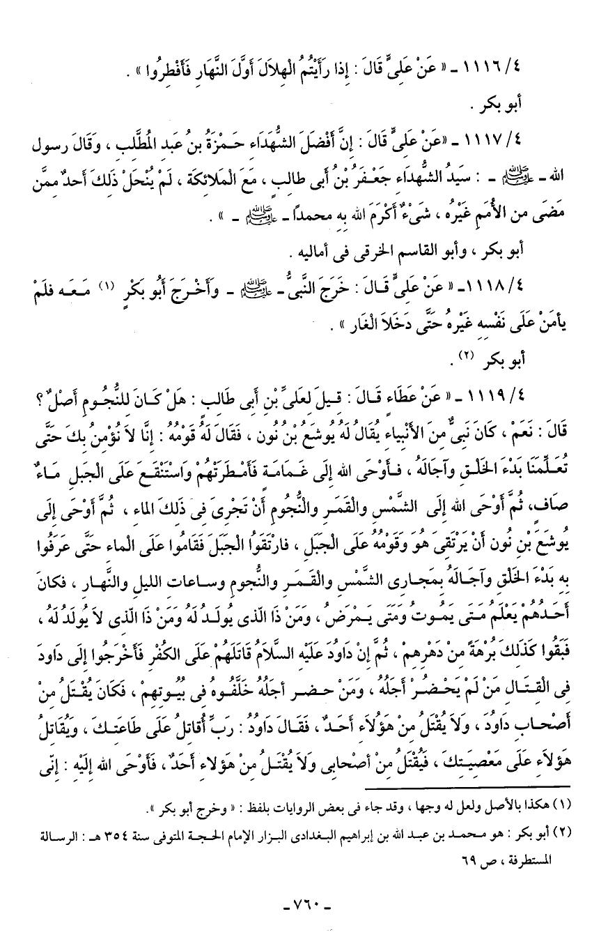 (¬2) أبو بكر: هو محمد بن عبد الله بن إبراهيم البغدادى البزار الإمام الحجة المتوفى سنة 354 هـ: الرسالة المستطرفة، ص 69