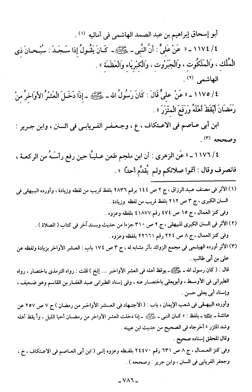 4/ 1175 - "عَنْ علِىٍّ قَالَ: كَانَ رَسُولُ الله - صلى الله عليه وسلم - إِذَا دَخَلَ الْعَشْرُ الأَوَاخِرُ مِنْ رَمَضَانَ أَيْقَظَ أَهْلَهُ وَرَفَعَ الْمِئْزَرَ".