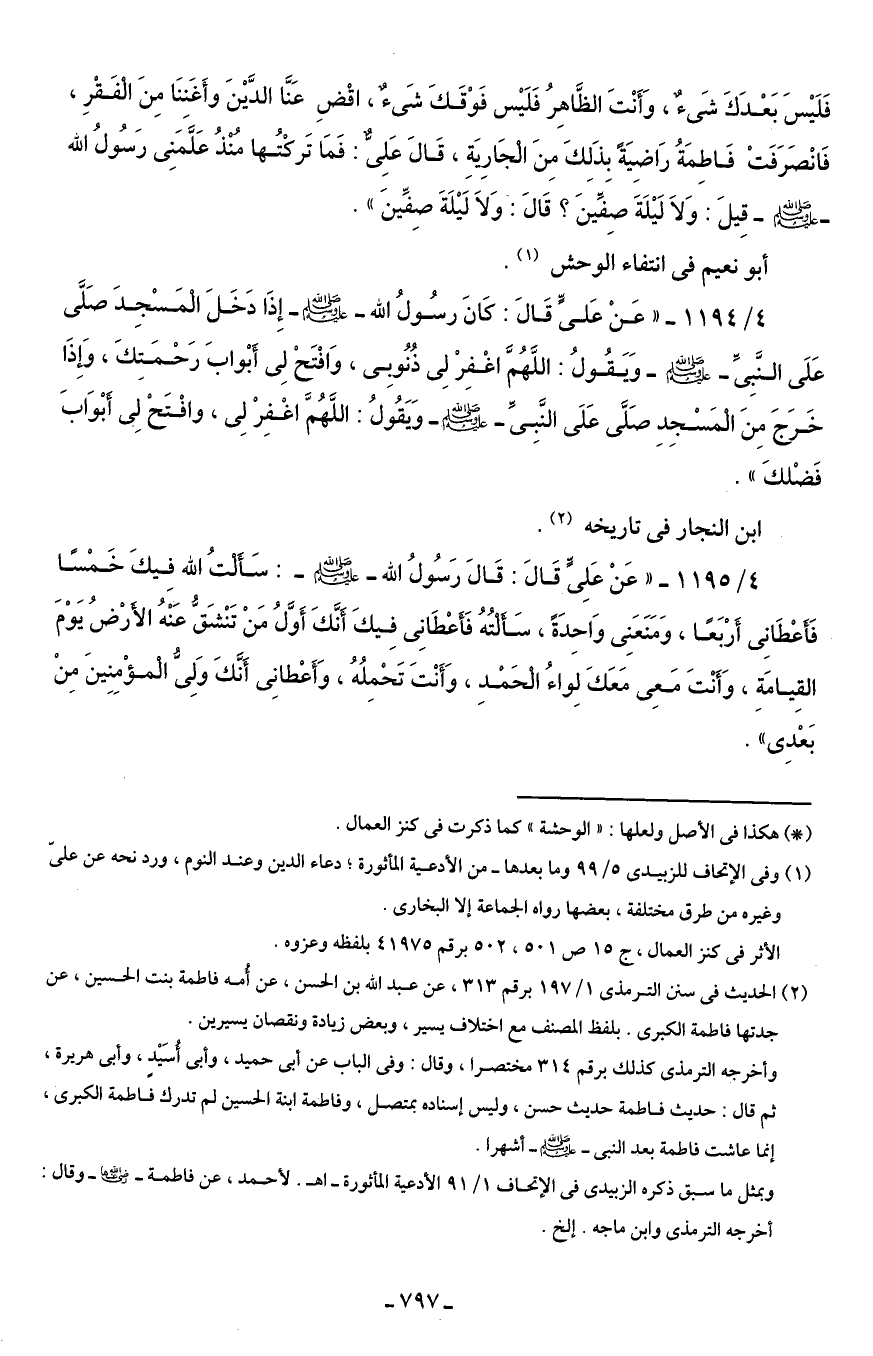 (¬1) وفى الإتحاف للزبيدى 5/ 99 وما بعدها - من الأدعية المأثورة؛ دعاء الدين وعند النوم، ورد نحه عن علىّ وغيره من طرق مختلفة، بعضها رواه الجماعة إلا البخارى.