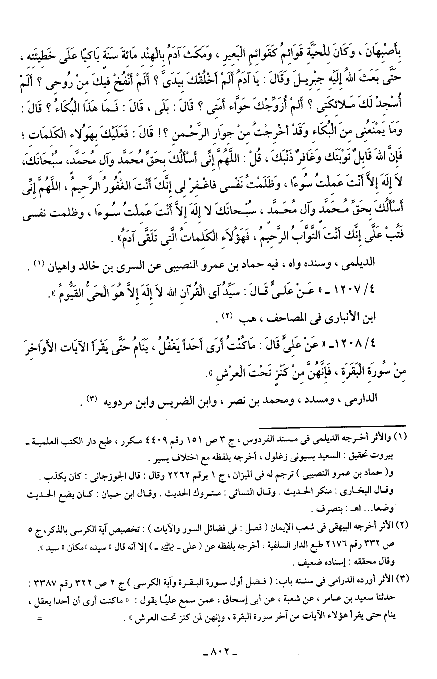 4/ 1207 - "عَنْ عَلىٍّ قَالَ: سيِّدُ آى الْقُرآنِ الله لاَ إِلَهَ إِلاَّ هُوَ الحَىُّ القَيومُ ".