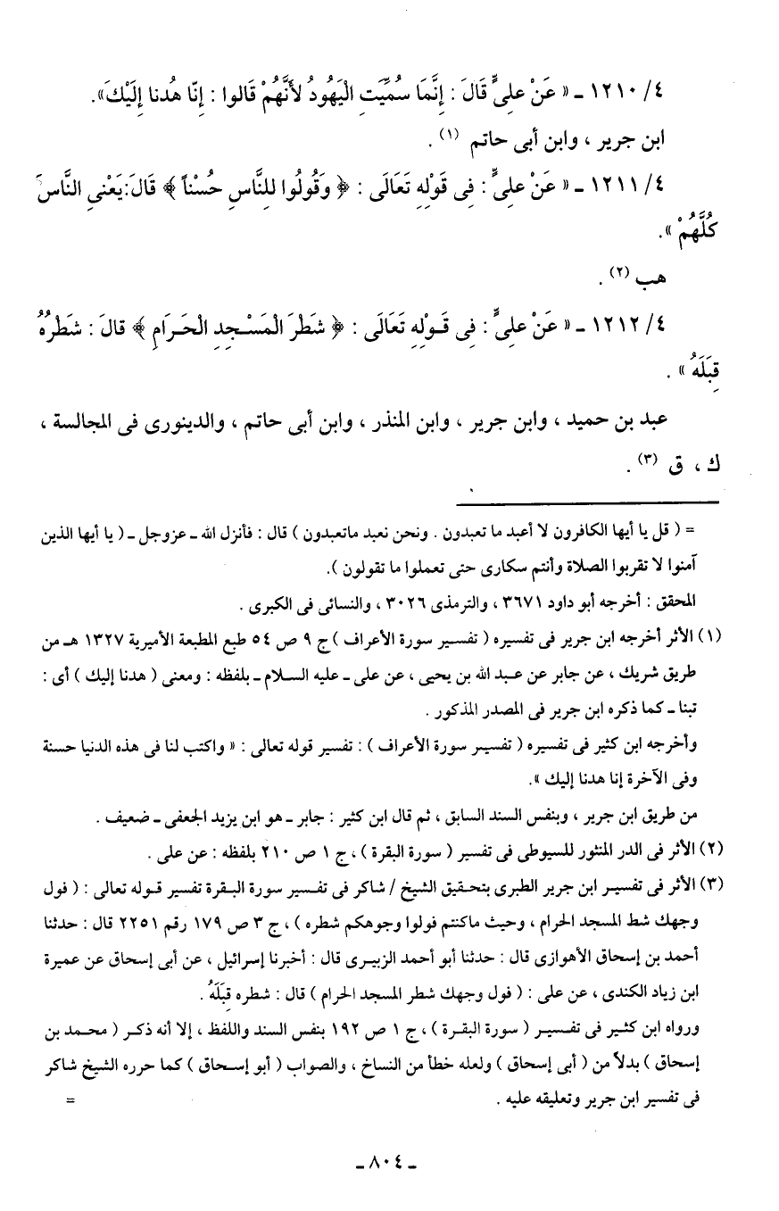 4/ 1210 - " عَنْ علِىٍّ قَالَ: إِنَّمَا سُمَّيتِ اليَهُودُ لأنَّهُمْ قَالوا: إِنّا هُدنا إِلَيْكَ".