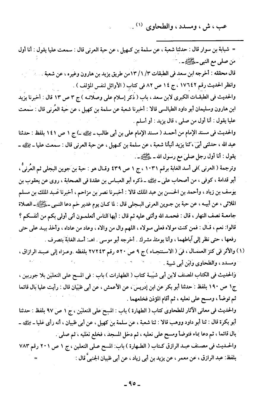 = شبابة بن سوار قال: حدثنا شعبة، عن سلمة بن كهيل، عن حبة العرنى قال: سمعت عليا يقول أنا أول من صلى مع النبي - صلى الله عليه وسلم -.