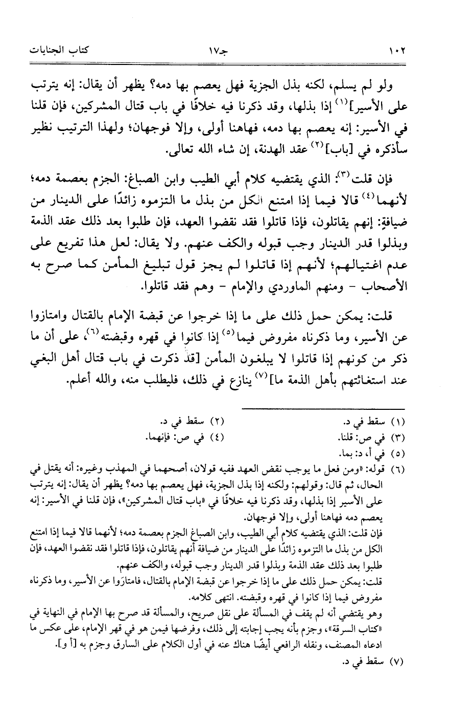 ولو لم يسلم، لكنه بذل الجزية فهل يعصم بها دمه؟ يظهر أن يقال: إنه يترتب على الأسير] إذا بذلها وقد ذكرنا فيه خلافا في باب قتال المشركين، فإنا قلنا في الأسير: إنه يعصم بها دمه، فهاهنا أولى، وإلا فوجهان؛ ولهذا الترتيب نظير سأذكره في [باب] عقد الهدنة، إن شاء الله تعالى.