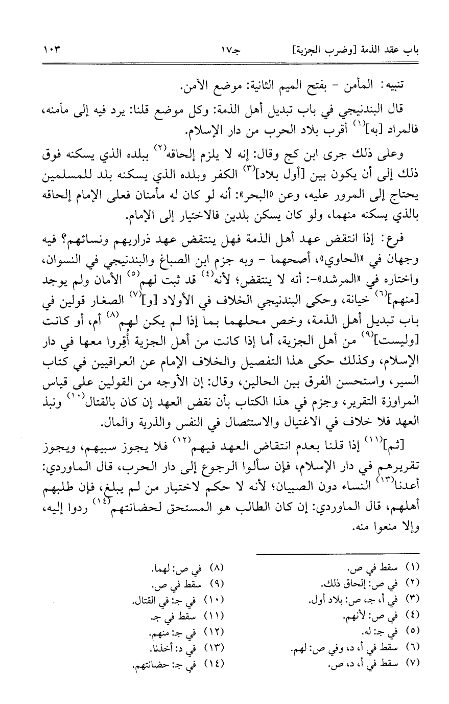 قال البندنيجي في باب تبديل أهل الذمة: وكل موضع قلنا: يرد فيه إلى مأمنه، فالمراد [به] أقرب بلاد الحرب من دار الإسلام.