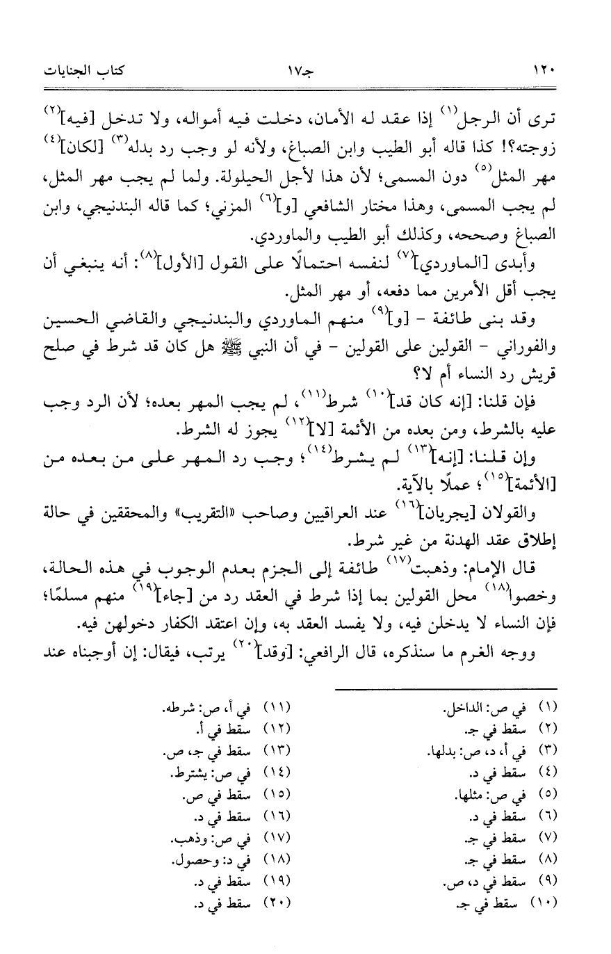 قال الإمام: وذهبت طائفة إلى الجزم بعد الوجوب في هذه الحالة، وخصوا محل القولين بما إذا شرط في العقد رد من [جاء] منهم مسلما؛ فإن النساء لا يدخلن فيه، ولا يفسد العقد به، وإن اعتقد الكفار دخولهن فيه.